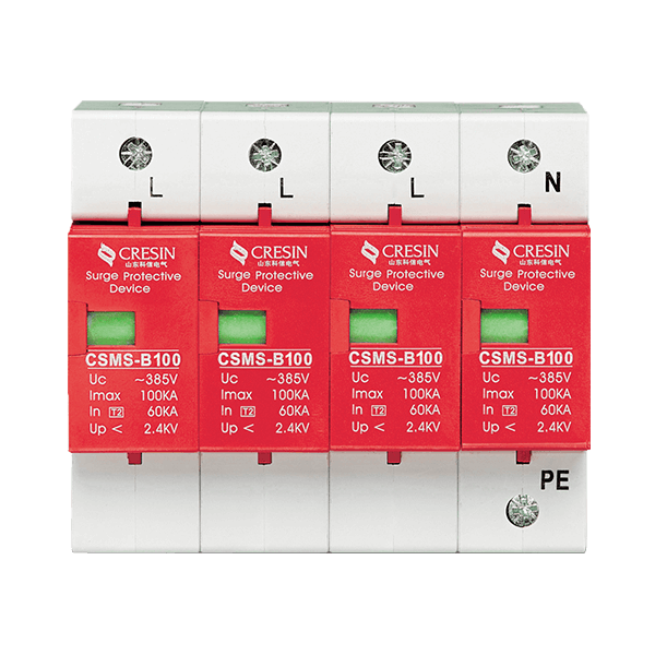 CSMS-B100系列浪涌保護器(電涌保護器)是依據GB18802.1、IEC61643-1防雷標準設計,適用交流50Hz,220v/380v及以下的TN-S、TN-C-S、TT、IT等供電系統,通過國家專業檢測機構的雷電防護T2級試驗,適用于雷擊風險較高地區(LPZ0B或LPZ0B與LPZ1交界區),可應用于交流電源系統的一級、二級防雷保護